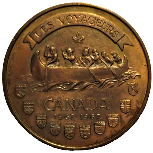 | Obverse lettering | LES VOYAGEURS CANADA 1867-1967 |