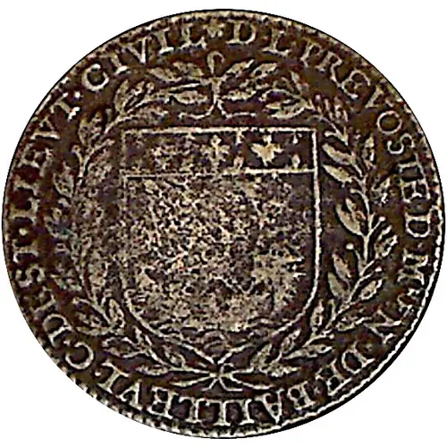 | Obverse description | Juxtaposed shields of France and Navarre surrounded by the two large cords of the king`s orders. |