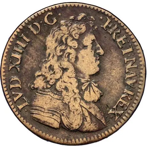 | Obverse lettering | LVD. XIIII. D. G. FR. ET. NAV. REX . (Translation: Louis 14th., by the Grace of God, King of France and Navarre) |