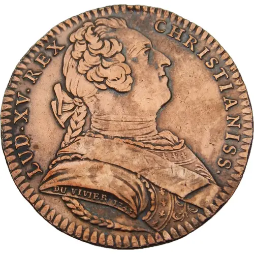 | Obverse lettering | LUD. XV. REX CHRISTIANISS. DU VIVIER 1743 |