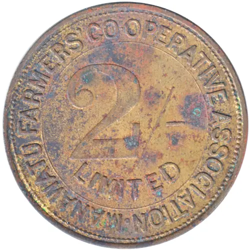 | Obverse lettering | MANAWATU FARMERS` COOPERATIVE ASSOCIATION 2/- LIMITED |