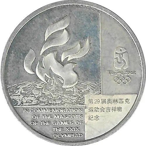 | Obverse lettering | Beijing 2008 IN COMMEMORATION OF THE MASCOTS OF THE GAMES OF THE XXIX OLYMPIAD 第29届奥林匹克 运动会市办城 纪念 |