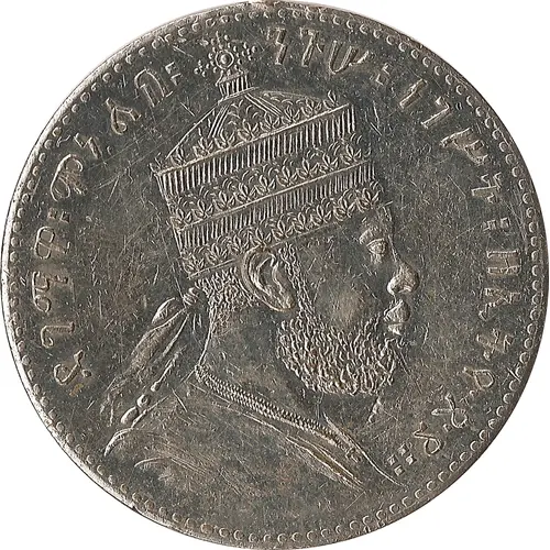 | Mô tả mặt trước | Emperor Menelik II bust facing right. |