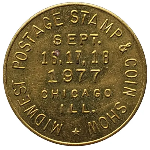 | Obverse lettering | MIDWEST POSTAGE STAMP & COIN SHOW SEPT. 16, 17, 18 1977 CHICAGO ILL. |