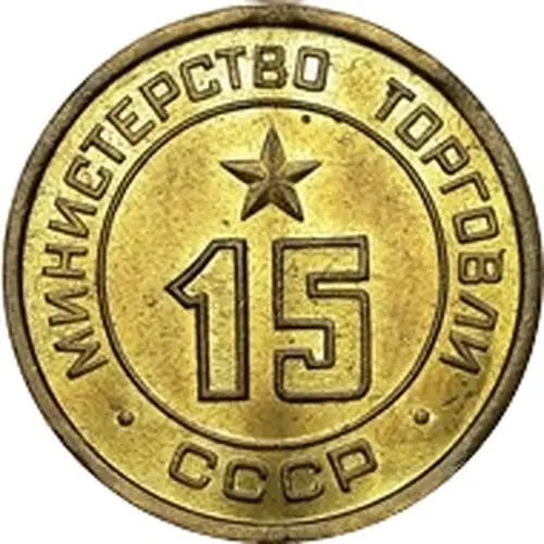 | Obverse lettering | МИНИСТЕРСТВО ТОРГОВЛИ ✯ 15 · СССР · (Translation: Ministry of Trade USSR) |
