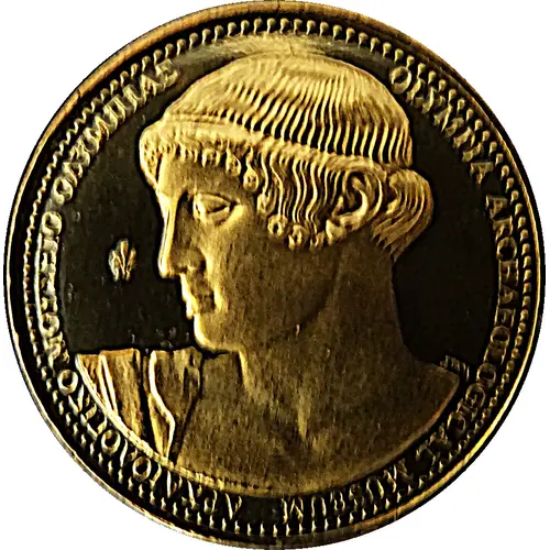 Obverse lettering ΑΡΧΑΙΟΛΟΓΙΚΟ ΜΟΥΣΕΙΟ ΟΛΥΜΠΙΑΣ OLYMPIA ARCHAEOLOGICAL MUSEUM