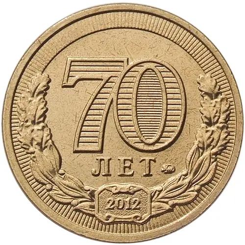 | Obverse lettering | 70 ЛЕТ ММД 2012 (Translation: 70 years MMD 2012) |