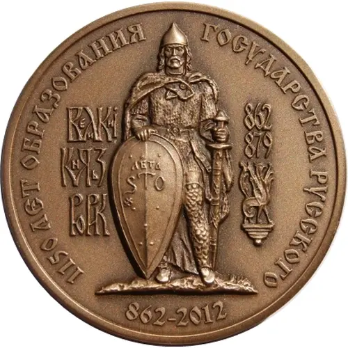 | Obverse lettering | 1150 ЛЕТ ОБРАЗОВАНИЯ ГОСУДАРСТВА РУССКОГО (- ВЕЛИКИI КНЯЗ РЮРИК 862 879 862-2012 |
