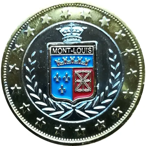 | Obverse description | Listel composed of 18 5-pointed stars. In the center, the crowned coat of arms of Mont-Louis, a French commune in the Pyrénées-Orientales department, Occitanie region. |