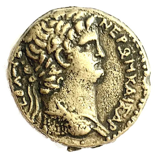 | Ön yüz açıklaması | Laureate bust of Nero. Reproduction Silver Tetradrachm. Laboratory Théraplix. |