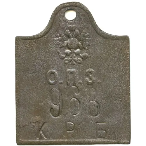 | Obverse lettering | О. П. З. 968 К Р Б (Translation: O. P. Z. (Okhtinsky gunpowder factory) 968 K R B) |