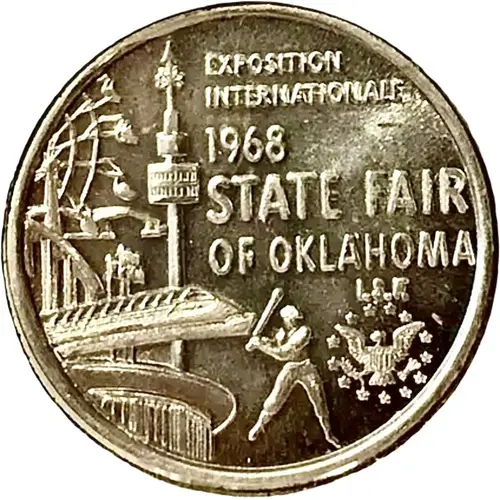 | Obverse lettering | EXPOSITION INTERNATIONAL 1968 STATE FAIR OF OKLAHOMA I.S.F. |