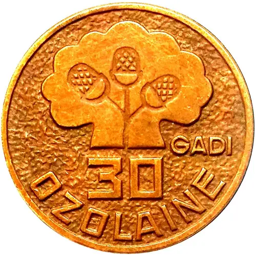 | Obverse lettering | GADI 30 OZOLAINE (Translation: 30 years for OZOLAINE) |