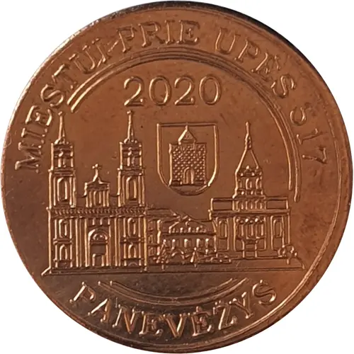 | Legenda do anverso | MIESTUI PRIE UPĖS 517 2020 PANEVĖŽYS |