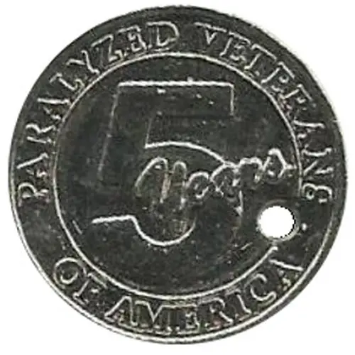 | Obverse description | PARALYZED VETERANS around top, OF AMERICA around bottom, 5 Years in script in center. |