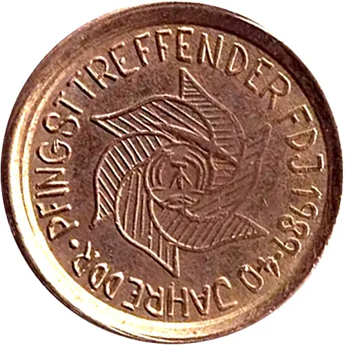 | نوشتههای روی توکن | PFINGSTTREFFEN DER FDJ 1989 40 JAHRE DDR |