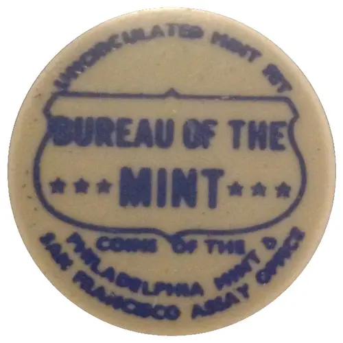 | Reverse lettering | UNCIRCULATED MINT SET BUREAU OF THE ***MINT*** COINS OF THE PHILADELPHIA MINT & SAN FRANCISCO ASSAY OFFICE |