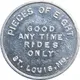 | Reverse lettering | PIECES OF EIGHT GOOD ANY TIME RIDES ONLY ST. LOUIS, MO. |