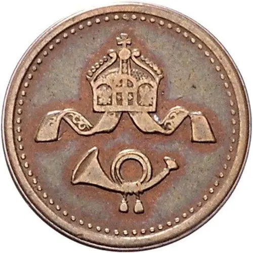 正面描述 Imperial crown above horn, beaded circle surrounding.