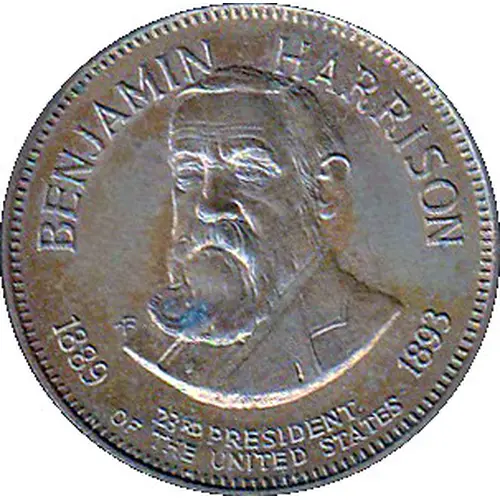 | Obverse lettering | BENJAMIN HARRISON FM 1889 1893 23RD PRESIDENT OF THE UNITED STATES |