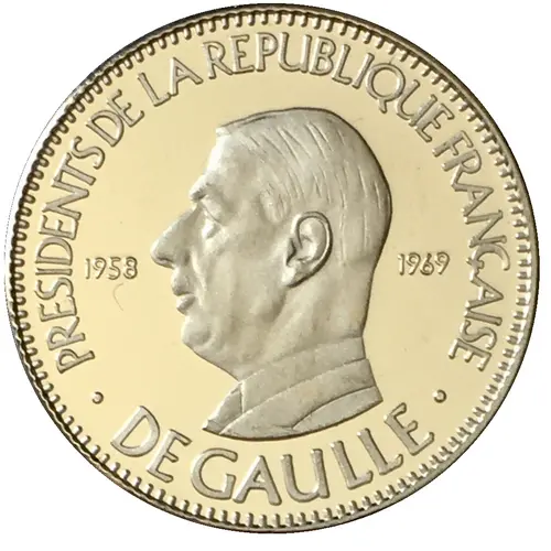 | Obverse lettering | . PRESIDENTS DE LA REPUBLIQUE FRANÇAISE . 1958 1969 DE GAULLE |