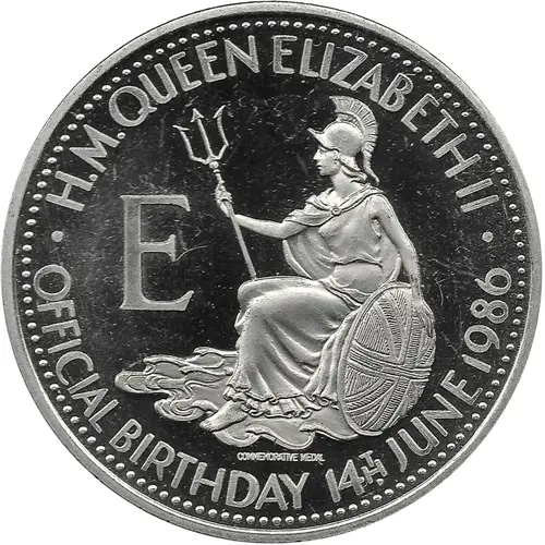 | Obverse lettering | H.M. QUEEN ELIZABETH II E OFFICIAL BIRTHDAY 14TH JUNE 1986 COMMEMORATIVE MEDAL |