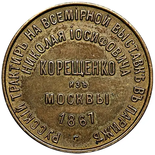 | Reverse lettering | RESTAURANT RUSSE DE L’L`EXPOSITION UNIVERSELLE A PARIS N. KORESCHTSCHENKO DE MOSCOU 1867 |