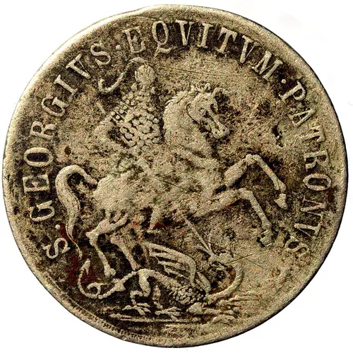 | Obverse lettering | S. GEORGIVS · EQVITVM · PATRONVS (Translation: Sanctus Georgius Equitum Patronus Patron Saint George (S GEORGIVS PATRONVS) on his horse (EQVITVM)) |