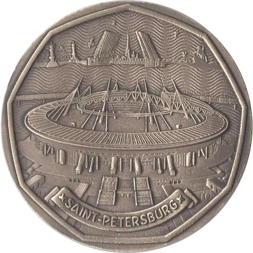 | Obverse description | Krestovsky Stadium / Saint Petersburg Stadium. View of St. Petersburg. |