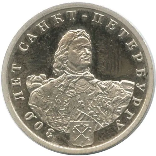 | Obverse lettering | 300 ЛЕТ САНКТ-ПЕТЕРБУРГУ (Translation: 300 years of Saint Petersburg) |