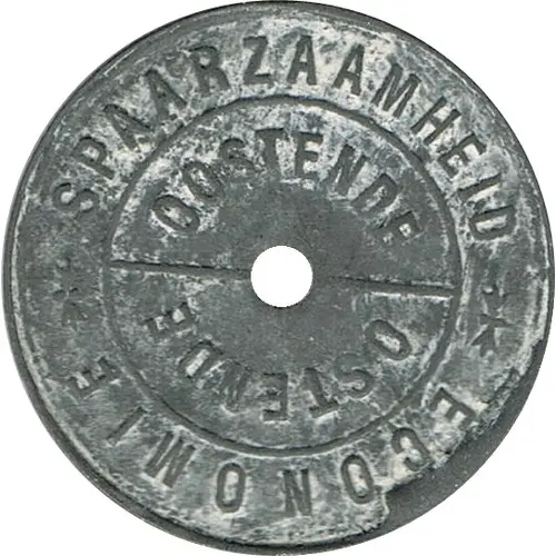 | Obverse lettering | * Spaarzaamheid Economie * Oostende Ostende (Translation: Thrift economy Ostend) |