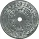 | Obverse description | Round with text around center hole, with divided circle in middle, each semi-circle containing text |