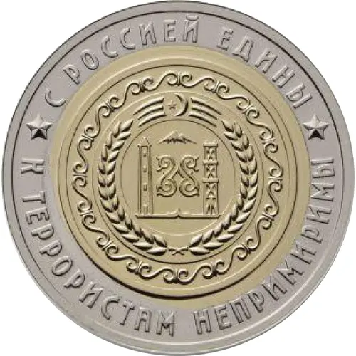 | Obverse lettering | С РОССИЕЙ ЕДИНЫ * С ТЕРРОРИСТАМИ НЕПРИМИРИМЫ * (Translation: United with Russia Uncompromising with terrorists) |