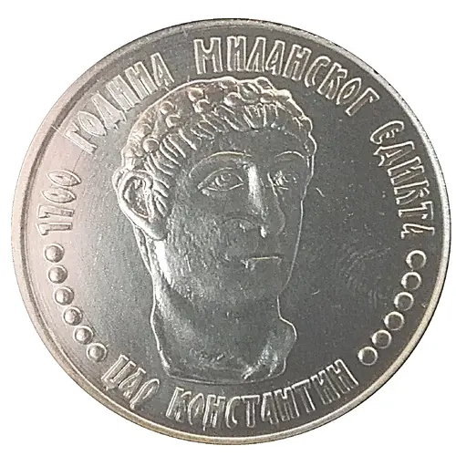 | Obverse description | Bust of Constantine the Great facing slightly right. `1700 ГОДИНА МИЛАНСКОГ ЕДИКТА` above and `ЦАР КОНСТАНТИН` below with 6 dots separating the two part lettering on each side. |