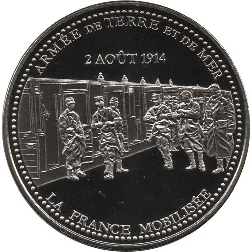 | Obverse description | Flags of the main countries involved (France, USA, UK and USSR) planted in an eagle breaking. |
