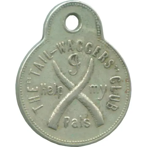 | Obverse lettering | THE `TAIL-WAGGERS` CLUB I Help my Pals |