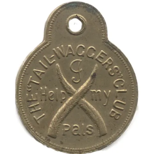 | Obverse lettering | THE `TAIL-WAGGERS` CLUB I Help my Pals |