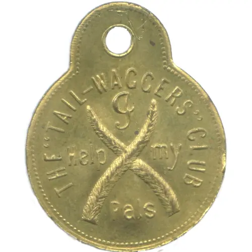 | Obverse lettering | THE `TAIL-WAGGERS` CLUB I Help my Pals |