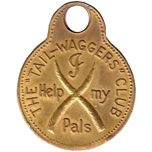 | Obverse lettering | THE `TAIL-WAGGERS` CLUB I Help my Pals |