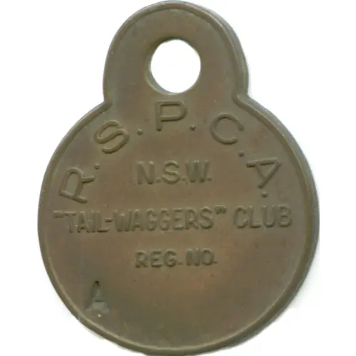 | Obverse lettering | R.S.P.C.A. N.S.W. “TAIL-WAGGERS” CLUB REG.NO. A |
