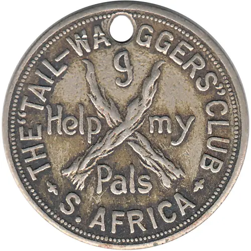 | Obverse lettering | THE `TAIL-WA GGERS` CLUB + S. AFRICA + I Help my Pals |