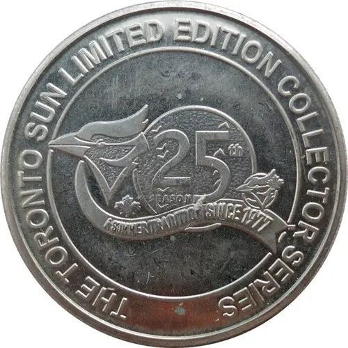| Obverse lettering | THE TORONTO SUN LIMITED EDITION COLLECTOR SERIES 25TH SEASON A SUMMER TRADITION SINCE 1977 |