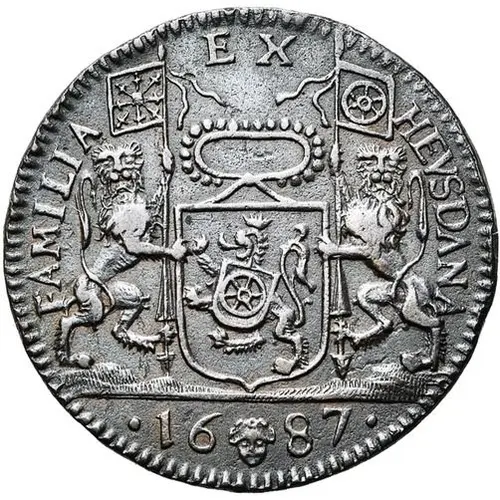 | Obverse lettering | EX HEVSDANA FAMILIA 1687 |