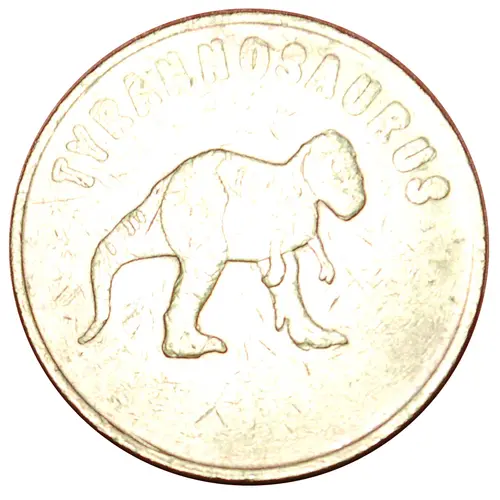 | Obverse description | Tyrannosaurus rex left. Legend above. |