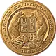 | Obverse description | UCB logo centered with bears to the right and left and collage of elements below (miner’s pick, ship, plow, grapes, wheat). |