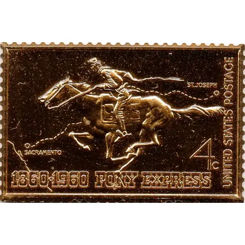 | Obverse lettering | 1860-1960 PONY EXPRESS UNITED STATES POSTAGE 4c ST.JOSEPH SACRAMENTO |