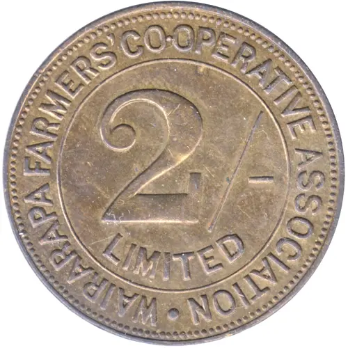 | Obverse lettering | WAIRARAPA FARMERS` CO-OPERATIVE ASSOCIATION. 2/- LIMITED |