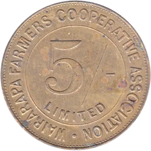 | Obverse lettering | WAIRARAPA FARMERS CO-OPERATIVE ASSOCIATION. 5/- LIMITED |