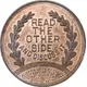 Within a wreath springing from a rainbow, READ / THE / OTHER / SIDE / AND DISCUSS below rainbow, FEDERATION OF THE / WORLD MEDALS / ISSUED / BY E.W. COLE / BOOK ARCADE MELBOURNE |