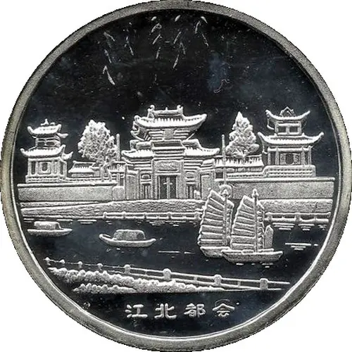 | Obverse description | Pagoda and chinese boats |